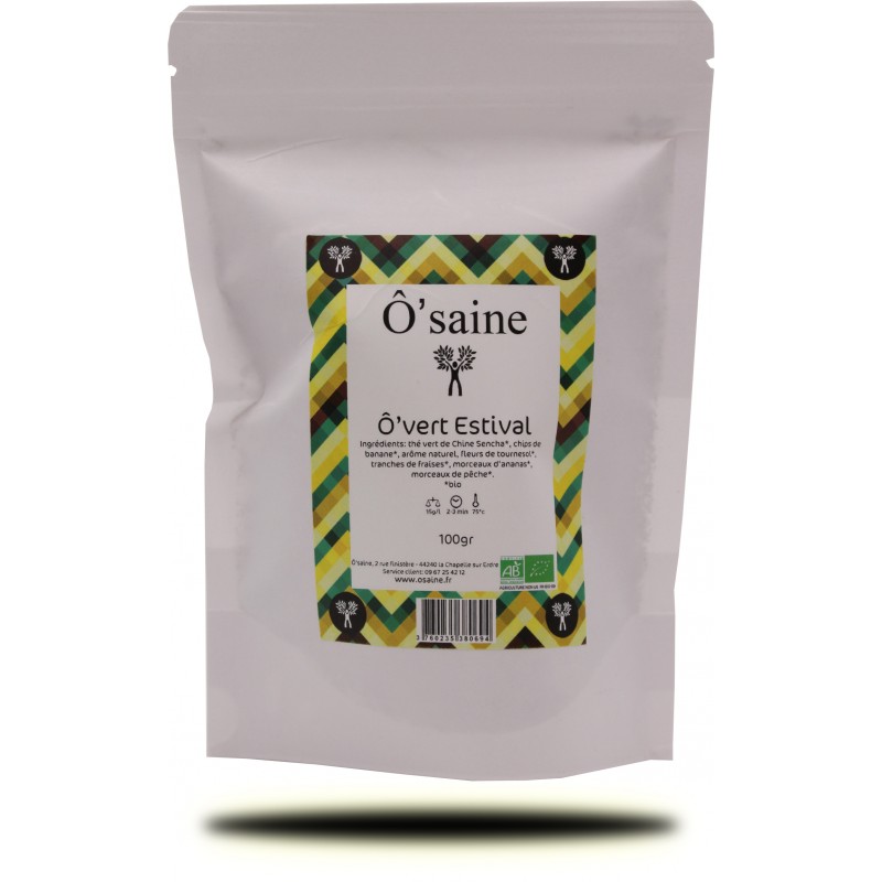 Ingrédients : thé vert de Chine sencha*, banane (banane, huile de noix de coco, sucre de canne, miel) *, arôme naturel, souci*, fraise*, ananas*, abricot*